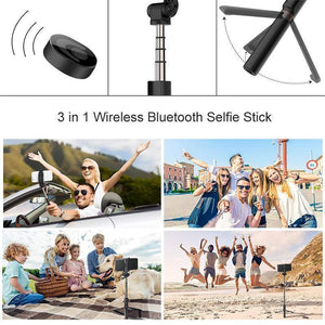 3 In 1 Mini Selfie Stick can be transformed as a tripod and selfie stick. With built-in Wireless remote shutter, you can enjoy remote photo shooting within 10m distance by connecting your phone via Bluetooth 3.0 .