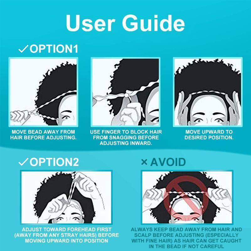 • ADJUSTABLE – Our design allows you to get the Perfect Fit every time. In order to reduce snagging while adjusting, always stretch band so bead is AWAY from hair and scalp first. While stretched, our cushions disappear allowing the bead to move freely.