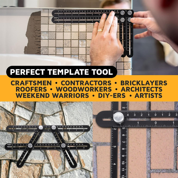 2-in-1 measuring tool and tile positioning hole opener. Our Alloy Universal Multilateral Measuring Locator has a six-piece ruler and six metal knobs that fold freely. Simply adjust them to precisely create the shape you want, make your measuring objects quick and easy.