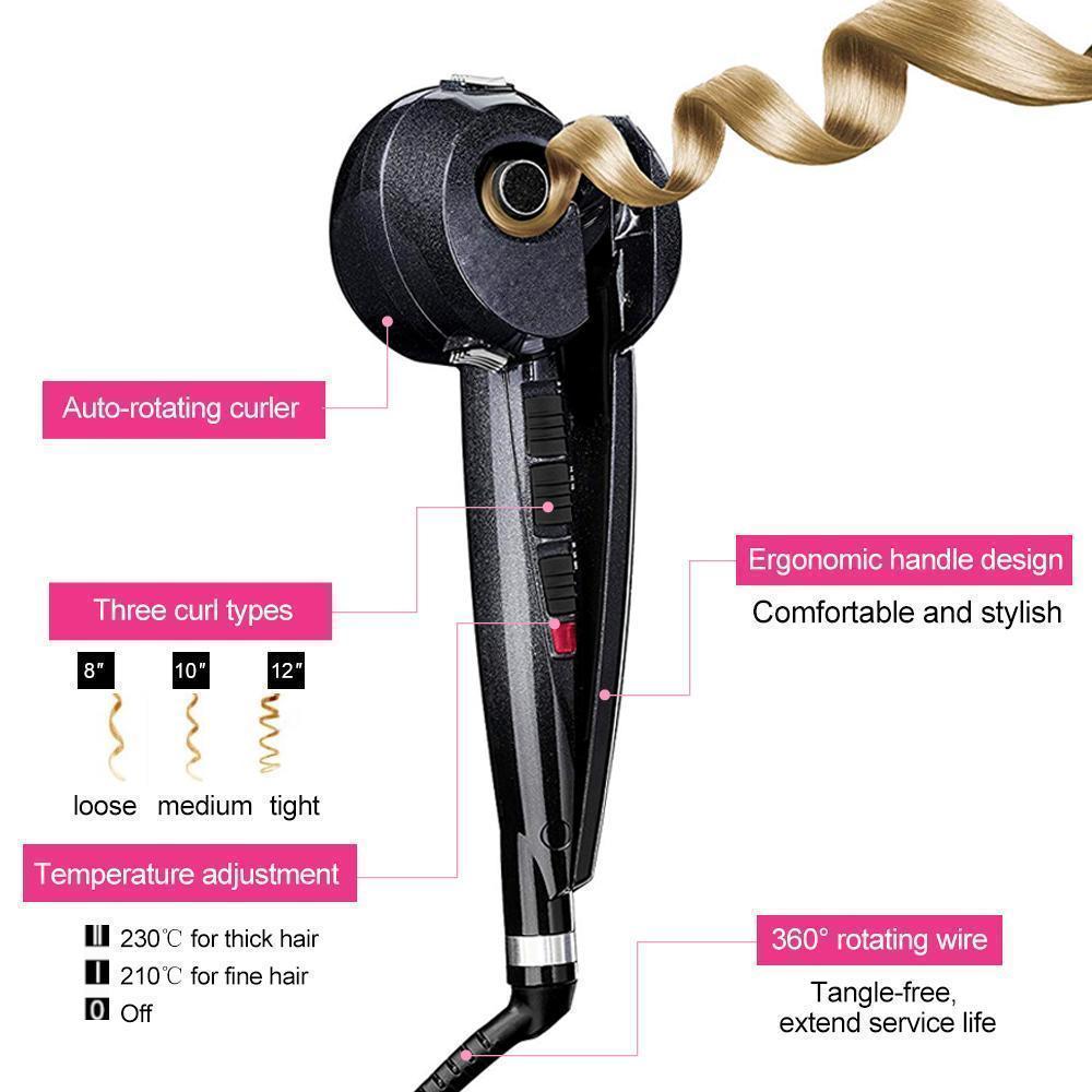 • Never tangles - tangle free technology, draws hair safely into chamber. Professional brushless motor creates tangle free curls.If hair is too much, the system will intelligently stops running to avoid tangling;