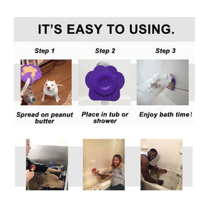 SIMPLE TO USE: Just spread peanut butter (or any spreadable dog snack) onto Bath Buddy, then stick Bath Buddy to your tub or shower wall. Your pup gets to enjoy a tasty snack while he or she gets a bath.