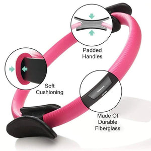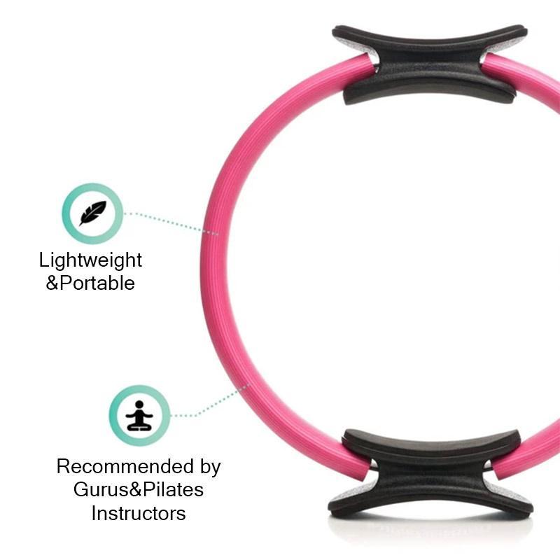 CUSHIONED RUBBER: Our Pilates equipment let the Soft and Sturdy Foam-padded handles Comfortably mold to your body. These ergonomic molded no slip handles provide comfort for ankles, legs or arms on both the inside and outside of the ring. Our fitness circle are also perfect for travel because they are almost flat, lightweight and do not take up a lot of volume.