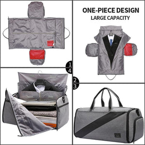 【Large Capacity with Multifunctional Bags】 The travel bag has a large main compartment for the bare essentials, a waterproof bag for some wet items like shampoo, wet towels or dirty clothes to keep you from getting clean. To separate an extra shoe compartment to keep your dirty shoes away from the rest of the garments. A side pocket for some small items.