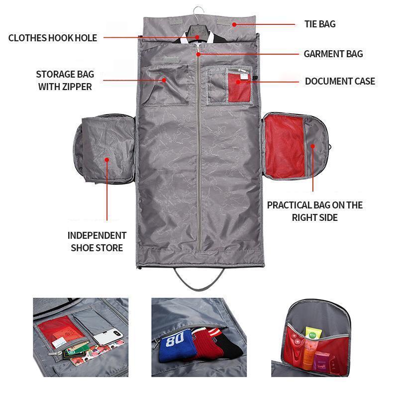 【Unique design】 Anti-wrinkle dress bag for suits, pants and dress. Perfect for protecting your clothes without wrinkles. In addition, some small inner pockets for your iPhone, your wallet, your headphones, etc. are included in a folding garment bag Perfect for business travel.