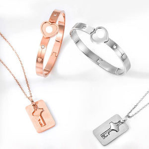 Who has the key to your heart? 💜Show the world how much you love each other with this unique couple bracelet & necklace set.