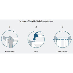 Add beautiful window treatments to any room with this set of instant Curtain Rod Brackets. This will save you time and tons of effort when you hang your next set of curtains. As easy to install as a thumbtack and won't leave holes in walls or woodwork.