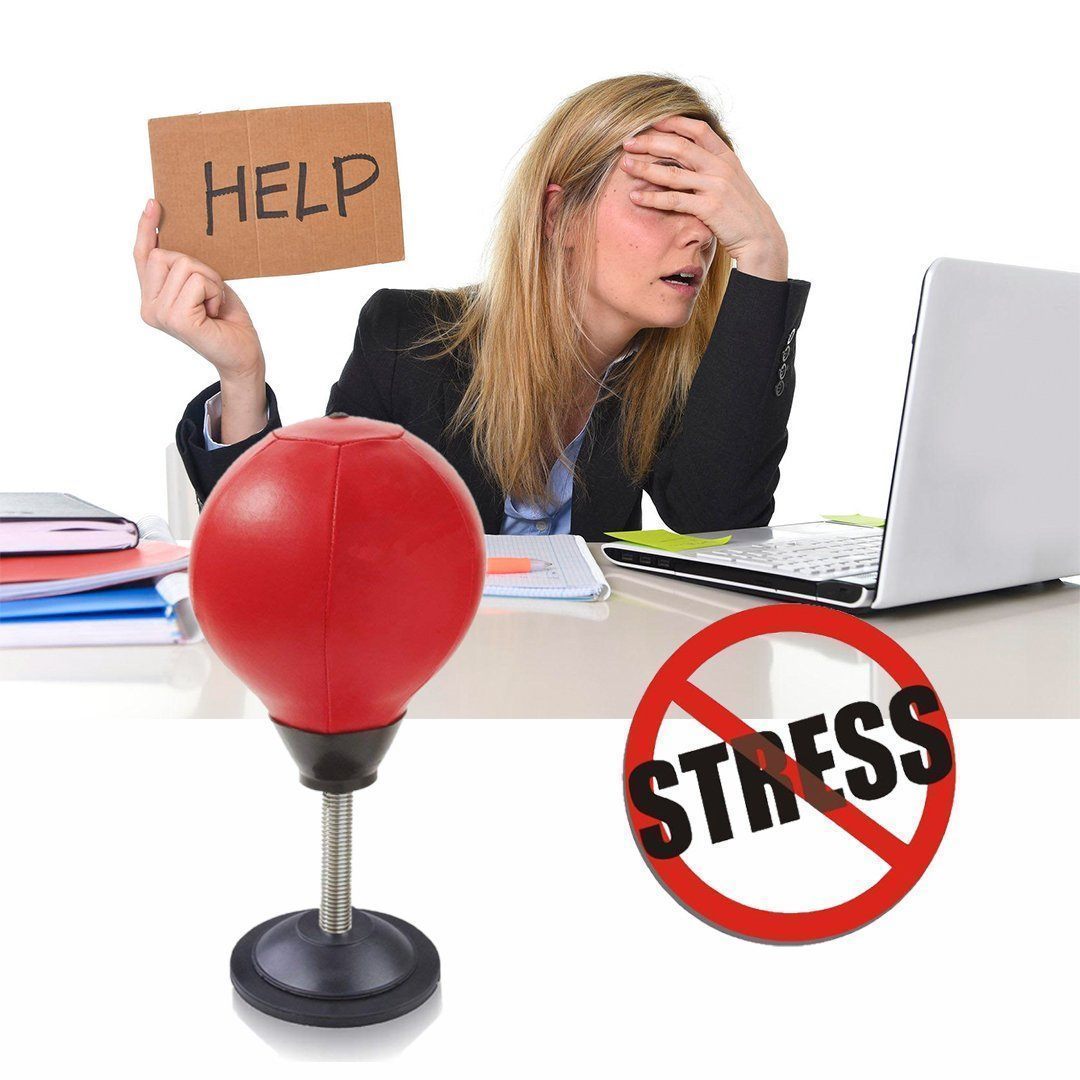 Relieve Stress. Take away your strain and frustration by hitting this table top punching bag.