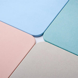 • ✔️FEEL AND TEXTURE ON YOUR FEET / DESIGN – Its sleek yet earthy design will compliment any style of home décor. The texture of the mat on your freshly washed feet will feel organic and soothing. You will be stepping on a cool slate-like surface. It will be a fascinating experience to feel water being sucked right off your feet. Complete the refreshing experience of showering/bathing by using your Diatomite Bath Mats.