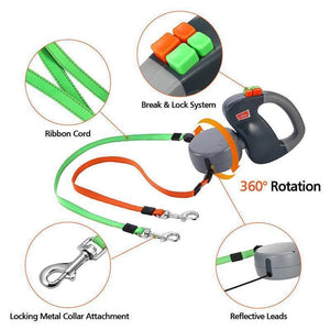 This is a non-tangling retractable leash allows you to walk two dogs at the same time, while maintaining individual control of each one. The built-in untangling mechanism does all the work for you so you can enjoy your walk without stopping to untangle leads.