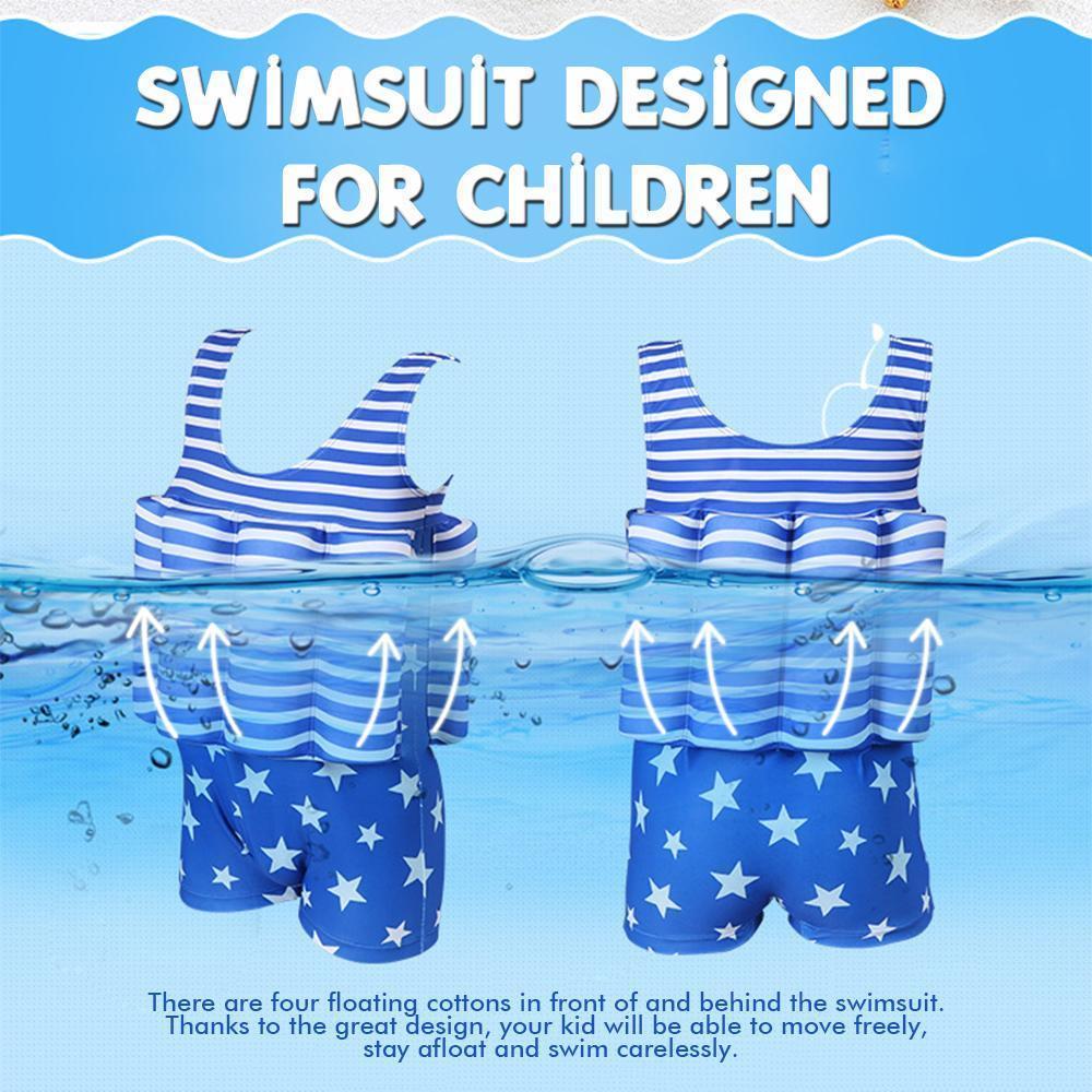 The belt on the swimsuit is made of floating cotton. Thanks to the great design, your kid will be able to move freely, stay afloat and swim carelessly. Once your kid leaves the water, the belt can be removed from the swimsuit and put on when it is needed.