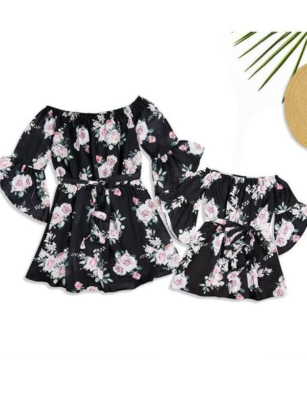 Floral Off Shoulder Mommy And Me Matching Dresses