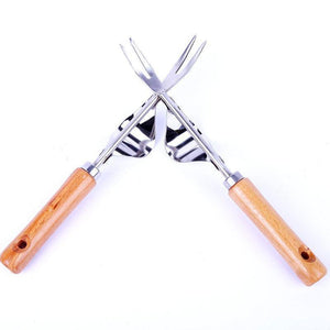 Don’t dig large holes with a trowel or painfully pull with that pesky weed with your hands! Our compact weeding tool features a curved, leveraged base that sits on the ground while you angle the strong, sharp forks into the soil to dig around the root base. Use the fork to then pry the roots and stem and loosen the soil to pull out the weed.