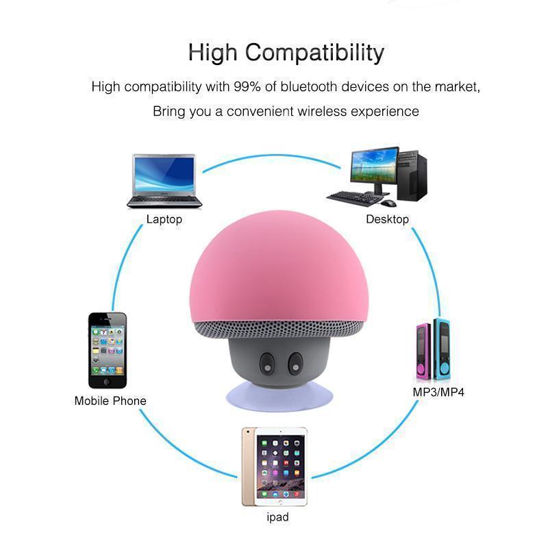 Amp up the volume anywhere you go with our Hirundo® Mini Wireless Shroom Speaker. The wireless speaker is shaped like a tiny mushroom and can stick onto almost any surface with its suction cup bottom. Just connect with Bluetooth to listen to music and answer calls.