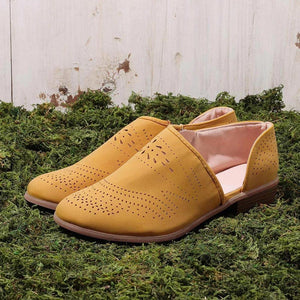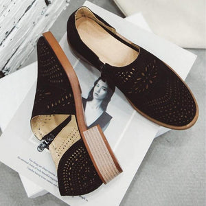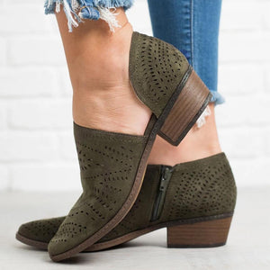 Hollow-Out Low Heel Faux Suede Zipper Ankle Boots