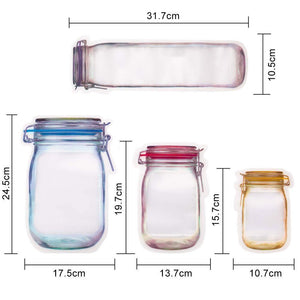 - [Zipper Airtight Design]:The food storage zipper bags with fashion mason jar shaped design to be your perfect traveling and camping companion which are ideal for protect the freshness for a variety of snacks,fruits,veggies,crackers,cookies and sandwich etc. leak proof,suit for taking on the go and transport.