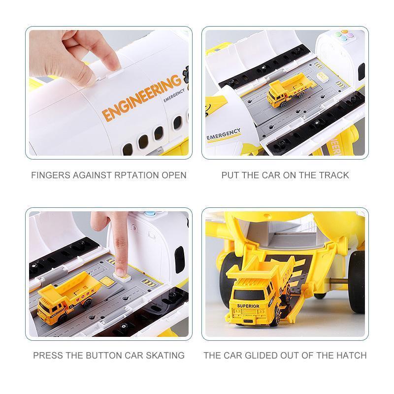 • Fun storage: the door can be opened, the rear door can open the transport car, and the front door car can be automatically driven out. the cabin can accommodate all the accessories. Let the children develop good habits.Best Gifts:The Best outdoor sports gift for children over 3 years old,wonderful present for Birthday, airplane theme parties, various festivals, such as Christmas, Thanksgiving.