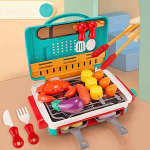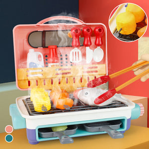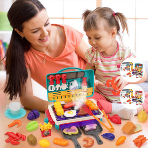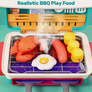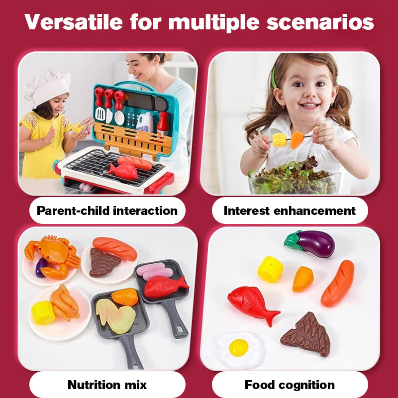 【Kids Grill Playset】The whole grill toy set includes grill, baking tray, color changing play food(Only Chicken Wings and Sausage), and lots of play bbq accessory, it can bring endless fun to your children.