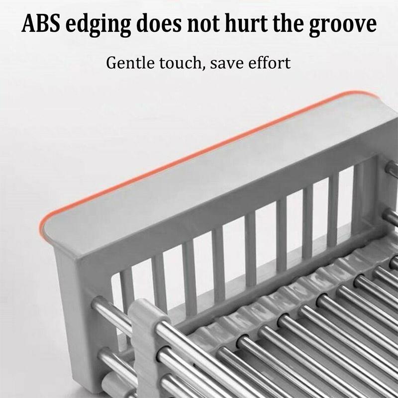 It is flexible to accommodate most sink sizes and It doesn’t take up valuable space and quickly rolls up for fast and easy storage!