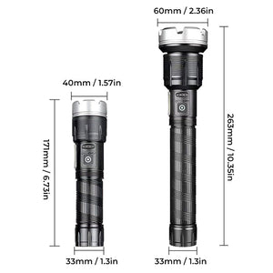 Durable, Waterproof, Convenient: This flashlight is made of aviation-grade aluminum alloy, non-slip and durable, waterproof rating IPX6, suitable for use in various extreme weather conditions. One button off function means press and hold the switch for 2 seconds in any mode to turn off the flashlight directly. This rechargeable flashlight has a battery indicator that lets you see the remaining power at a glance. Remind you to charge the flashlight in time, convenient as a camping flashlight or EDC flashlight.