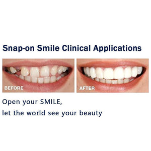 The Perfect Smile Snap-On Braces is a non-invasive removable veneer that provides an instant perfect smile. You will have instant pearly white teeth without costly dental visits. The teeth brace is designed to look like a natural part of you. What makes is the Perfect Smile Veneer unique is that it looks like a natural part of you, unlike most veneers that look fake and unnatural. This is ideal for people with missing, crooked, chipped, or stained teeth. Get a bright and perfect smile with the Perfect Smile Snap-on Braces today.