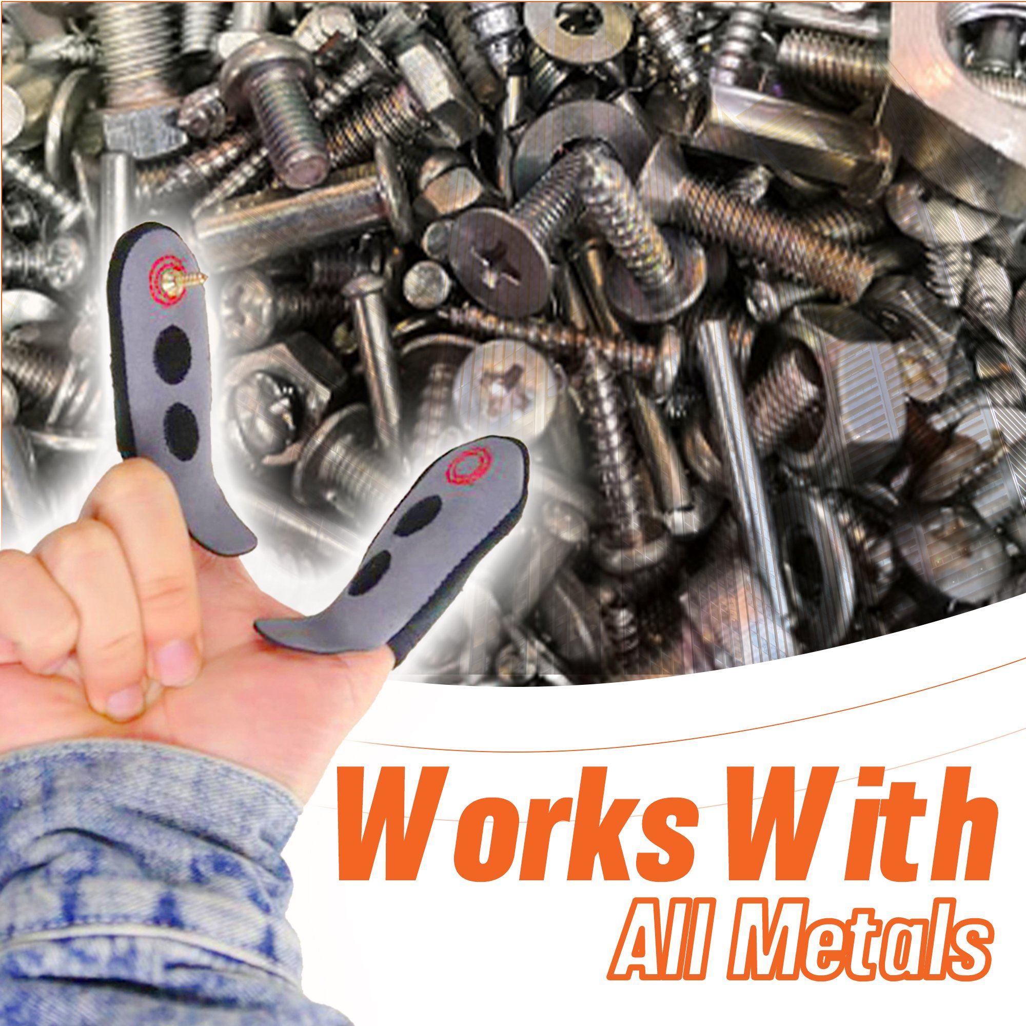Works With All Metals! The magnet fingertip sleeve works for all kinds of magnetic metals, from your regular screws, nuts, or even metal paper clips!