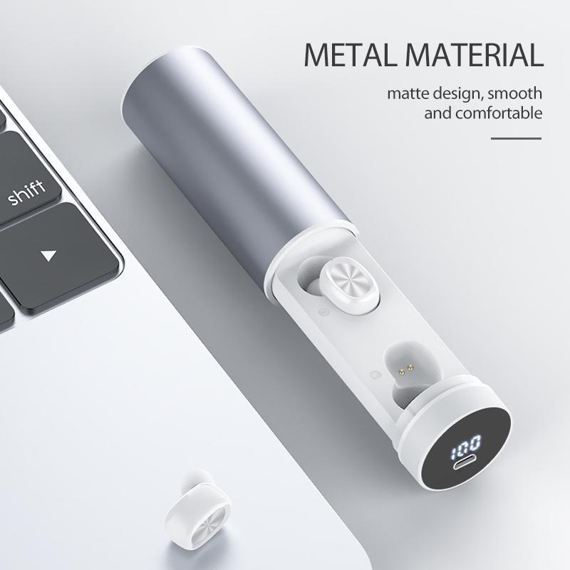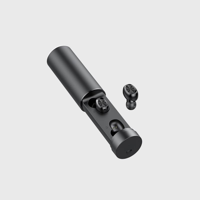 • The package contains: left and right earphone + charging compartment + three pairs of ear caps (including the pair on the earphone) + charging cable + manual