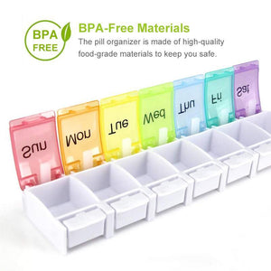 BPA-FREE MATERIALS. This pill case is pretty safe because of being made of food grade materials. You would be worry-free with the BPA-free pill boxes and organizer when storing multiple pill regimes inside. With the transparent plastic lid, it's quite easy to distinguish the pills in each dose without opening the lids.