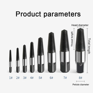 - 1 * 8 Pcs Pipe Screw Extractor Set: #1 , #2, #3, #4, #5, #6 , 7# , 8#.