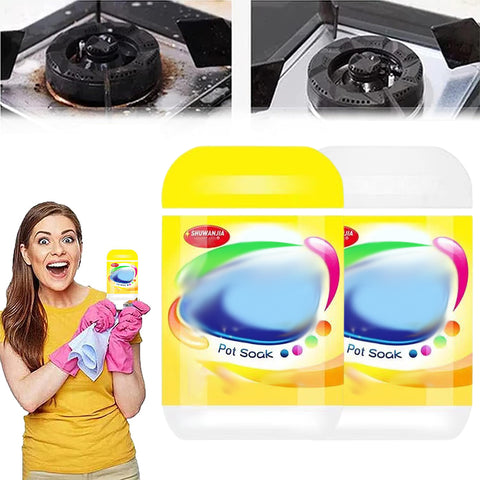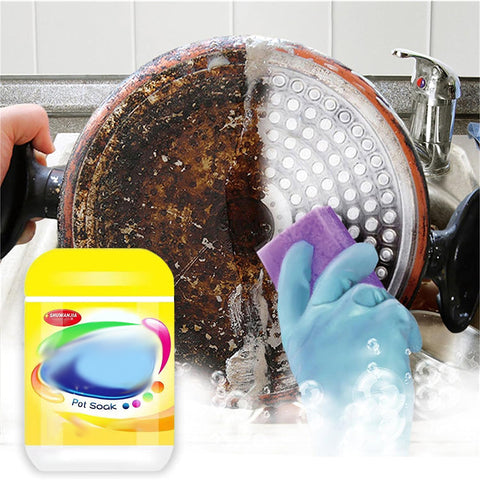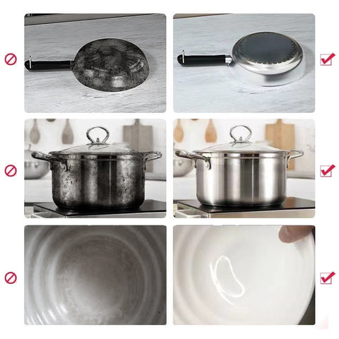 Soak yourself, relax, rejoice: Fill the sink or a basin with warm water. Add a spoonful of soaking powder to the water. Submerge the cooking vessels and leave to soak. Wipe or rinse off the softened dirt, revealing the shine underneath!