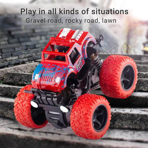• 🚗 【360 ROTATING STUNT】Kids will be surprised by the upright running and 360° rotating stunt! Revolving the wheels and putting the vehicle upright, you can see the hot rotating wheel trick! Amazing designs for boys and girls. It can be played on any ground with ease and confidence, be it in sand, grass, muddy patches or rocky trial paths. Splash-proof and weather-proof. Suitable for your kids or toy cars lover.