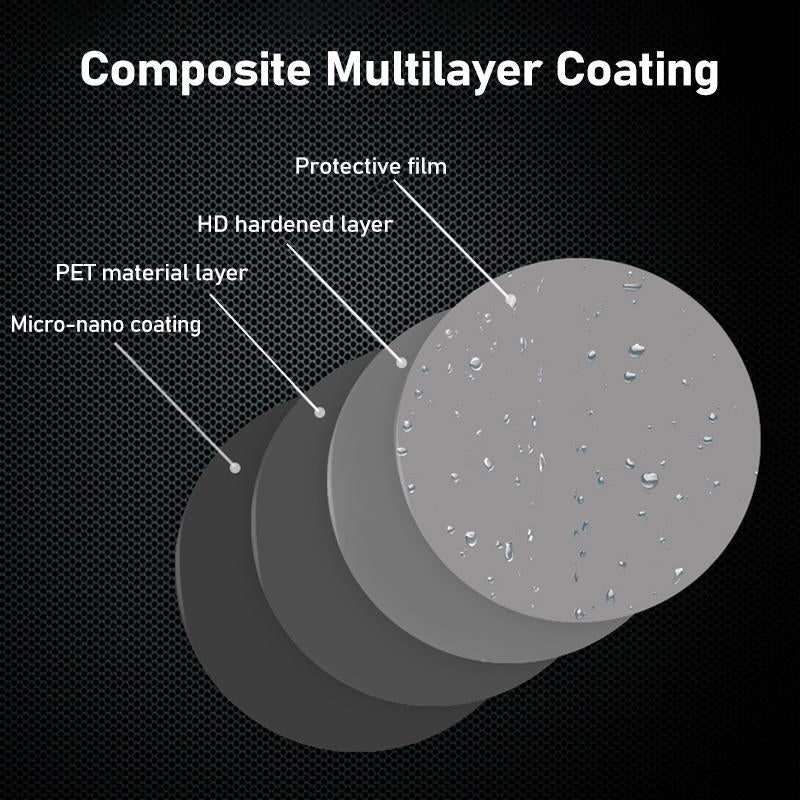 High Quality Materials—rearview mirror coating films has three PET protective membrane and one nano-adhesive layer hydrophobic effectively, improving driving visibility. it has high transmittance, resistance to strong light reflections, reduce dazzle light, relax visual fatigue.