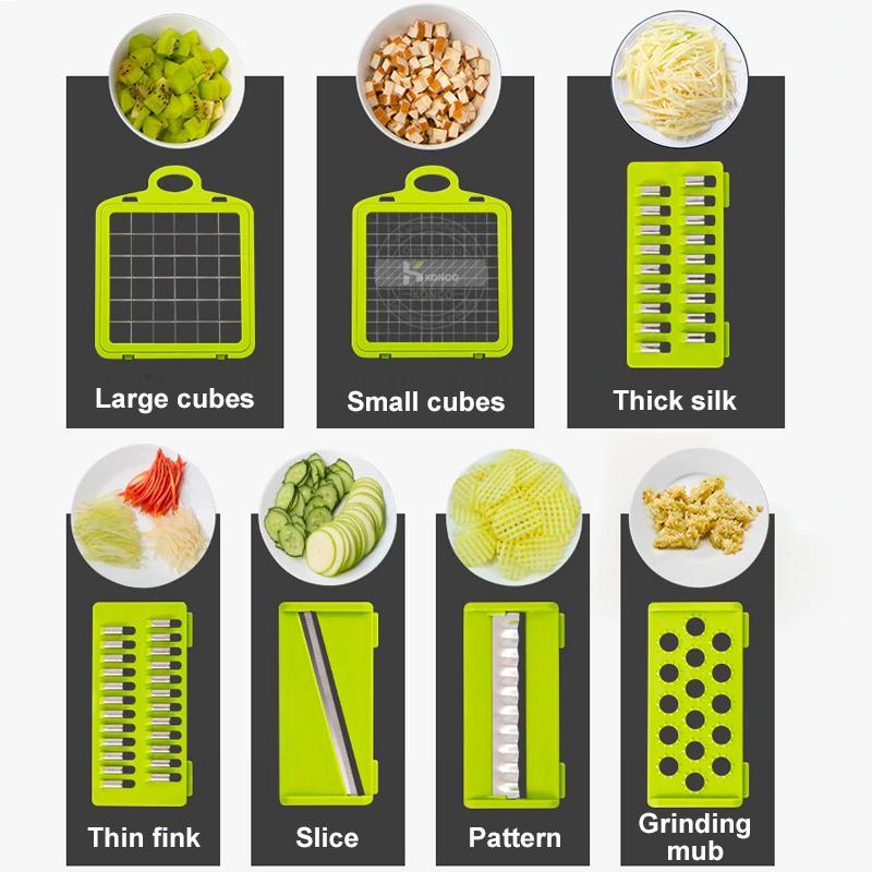 - Practical and easy to use: It will cut all kinds of vegetables, grate cheese, slice the potato, and cut your fruits into beautiful even sizes in seconds. What's more, it can even create paste-like vegetables such as mashed potatoes.