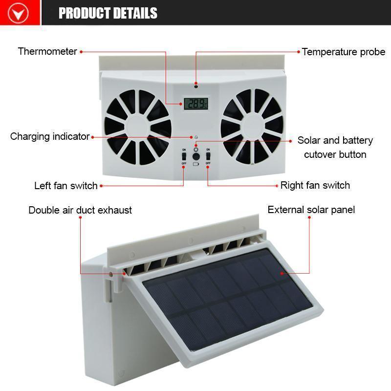 Fresh air by heat, air vents with double conduit, dual motor design, improved exhaust Speed Efficiently solar and battery, switch control, controllable solar cells Used separately.
