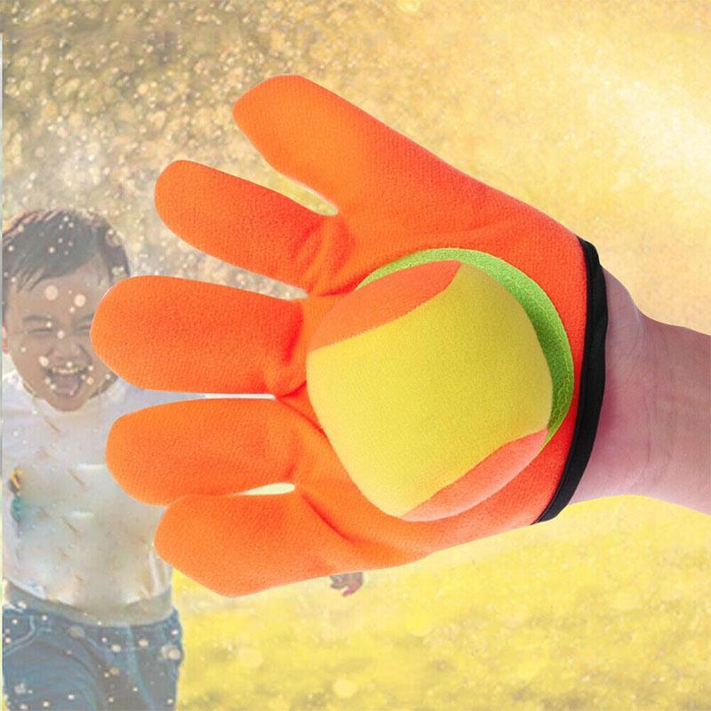 - One player throws the ball and the other player catches the ball with the glove.
