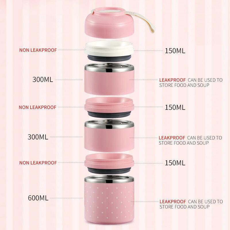 - LEAK & SPILL PROOF - Between each stackable insulated compartment are heavy-duty silicone seals to lock in freshness, leaks and odors. Please be aware that the coupling between layers is tight to prevent leak and spill.