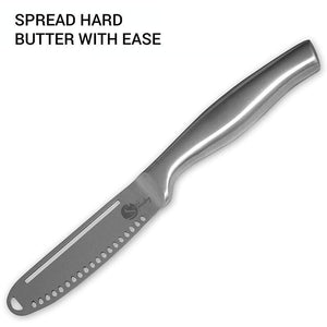 PERFORMANCE: Your bread will no longer be torn into pieces, small slotted holes running down the blade edge designed to curl hard butter on your bread. One larger hole designed to curl larger amounts of butter into a rich source of energy on your toast. With the additional Wide Butter Cutter slot for those days where you just need more...