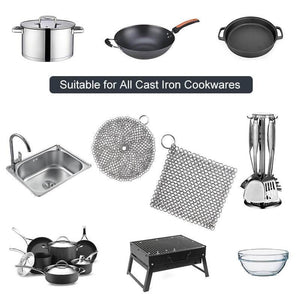 • DURABILITY:This cast iron skillet cleaner is machine soldered by Premium 304 Stainless steel.