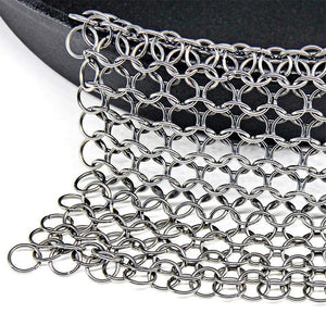 This Ring stainless steel kitchen cloth is perfect for cleaning all your cast iron cookware, such as cast iron pans, skillets, dutch ovens, camp chef griddles, waffle irons, and so on. Unmatched durability and constructed to last as long as your cast iron products. Each chainmail ring is composed of the highest quality food-grade stainless steel in the industry to be smooth enough for pans and safe.