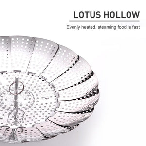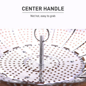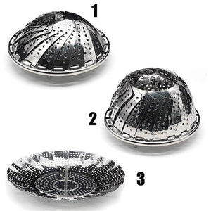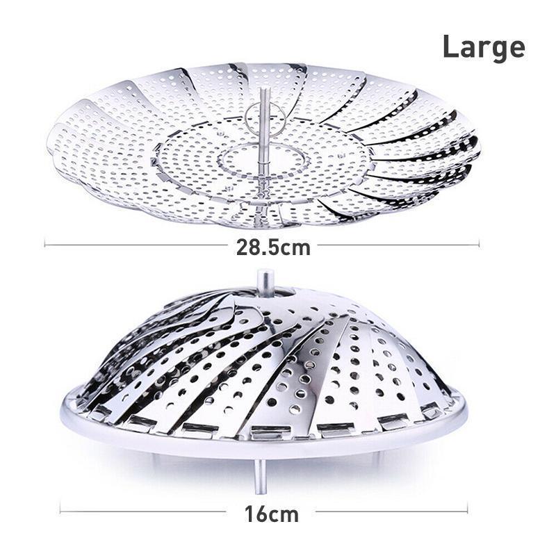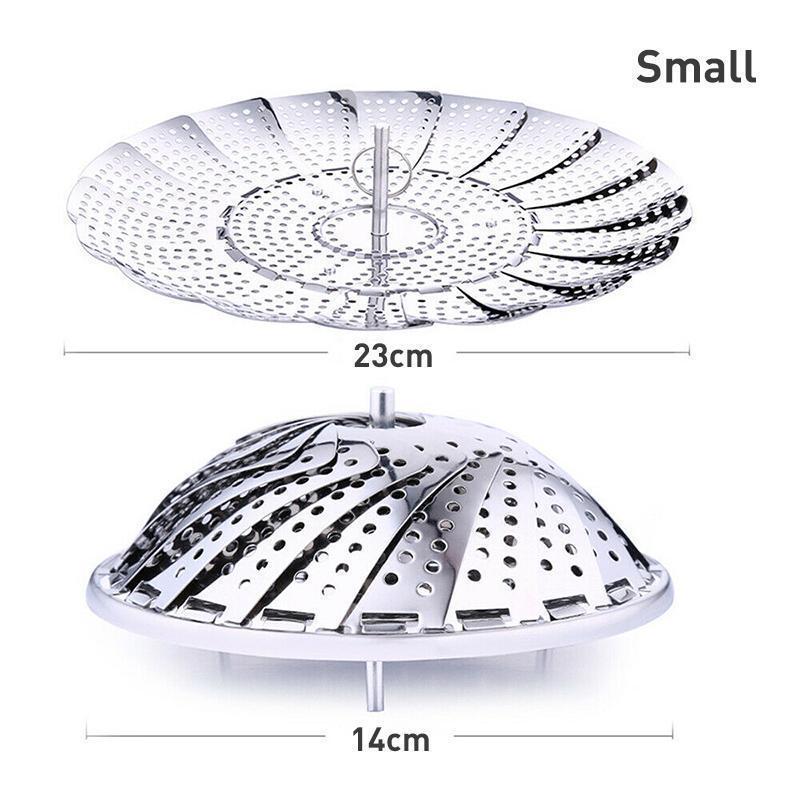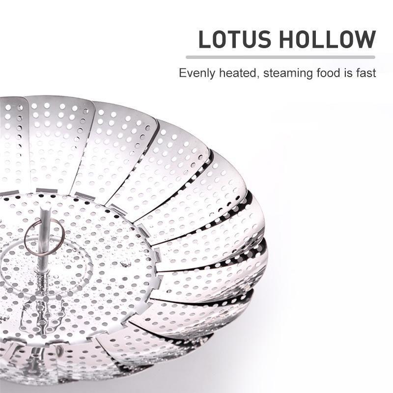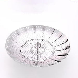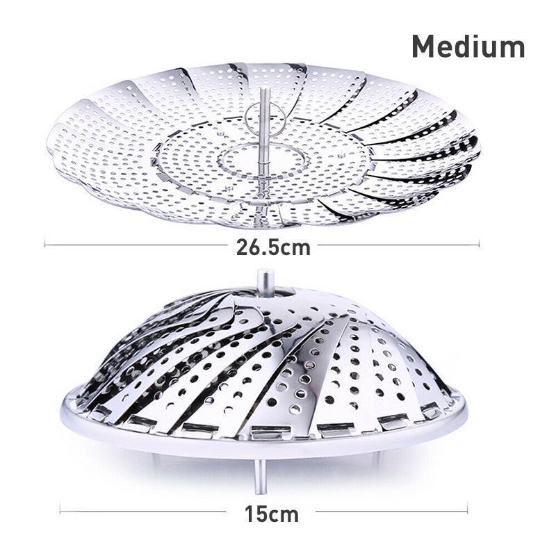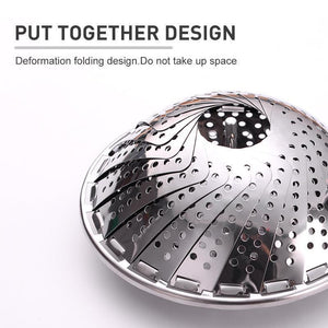 Still using the old steamer? The gap in the traditional steamer will cause food to fall into the pot. Try to find something to help you to deal with this problem. Now everyone is using a new version of stainless steel telescopic steamer. With it, you can make cooking easy, and perhaps you will fall in love with cooking. Our Stainless Steel Telescopic Steamer will be a perfect gift for you.