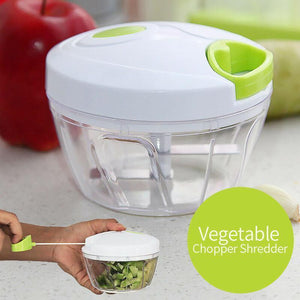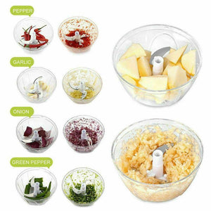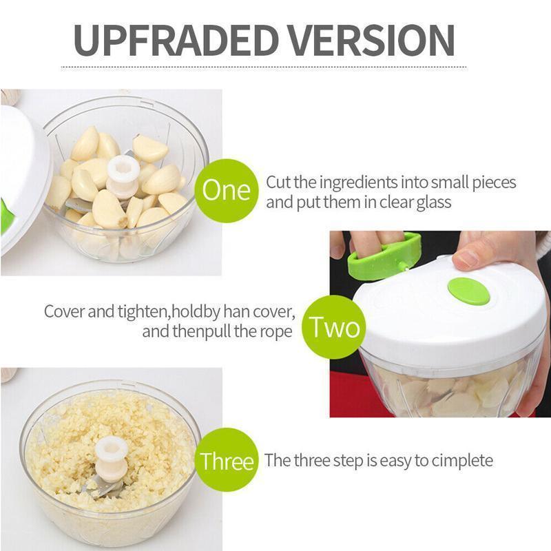 Easy to Use - This manually powered food chopper made from ABS and Stainless steel materials, environmental and no harm to your health.Designed for a perfect chopping/blending job, this hand food chopper takes the hard work out of chopping & blending vegetables, fruits, nuts, and herbs. Features sharp stainless steel blades for fast and even chopping/mincing, comfort soft grip lid, anti-skid base, easy pull cord, and a large handle.