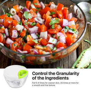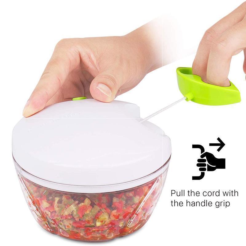 Ergonomic Design - Comfort soft but strong grip lid attached, anti-skid base, flexible pull cord, TWO strong convenient handles design, Simply place ingredients in the container, twist and lock the lid, and pull the cord to spin the chopping blades.