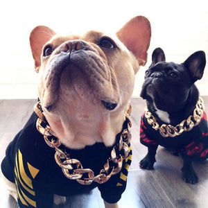 Take the lead and handle your dog with grand style using this Thick Gold Chain Pets Safety Collar! It is totally Bad Ass, and would give your pet that Boss Look by emphasizing their elegance, power, and style. This Gold Chain Pets Safety Collar is made of plastic, and plated with gold for a luxurious style, tough, and funny look. It is durable enough to withstand even powerful pets. It has 3 sizes for you to choose and would fit any size pet. This stunning pet collar will look beautiful on your fury friend.