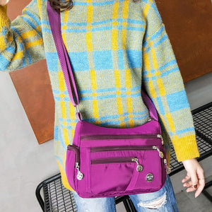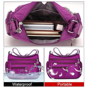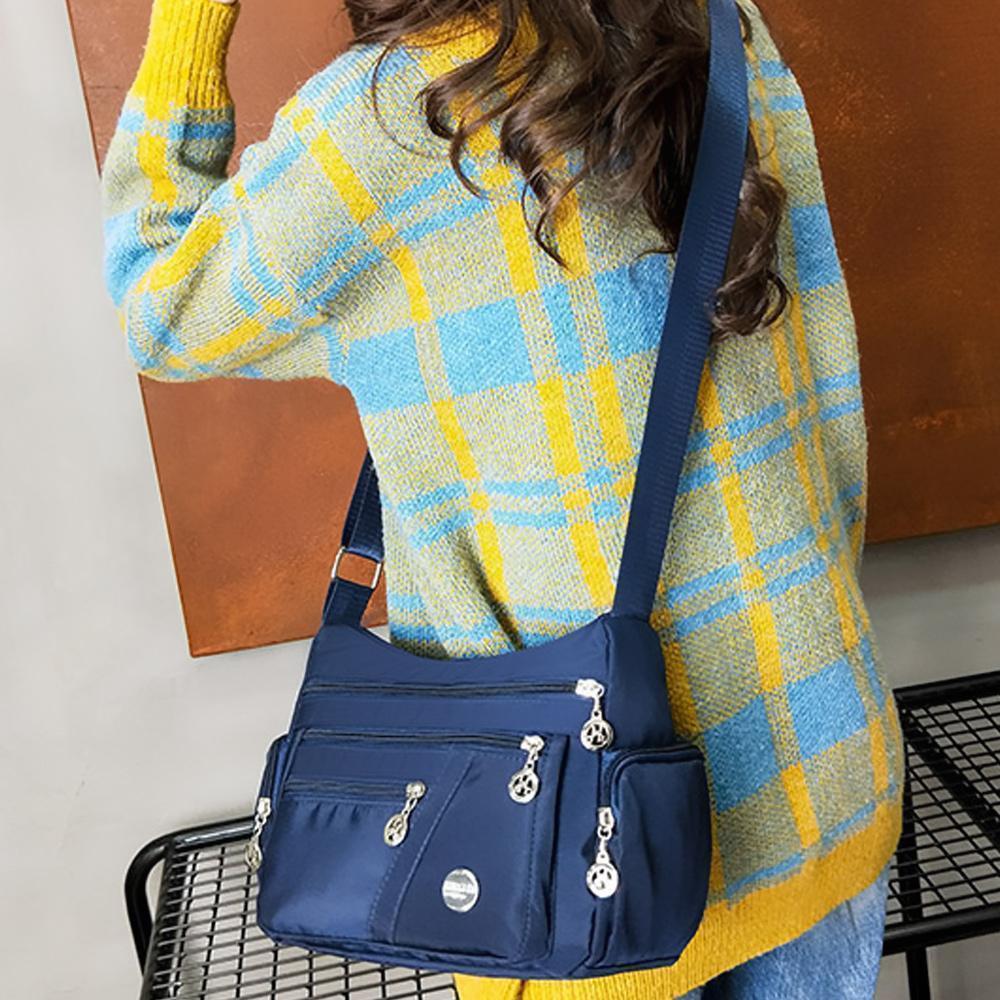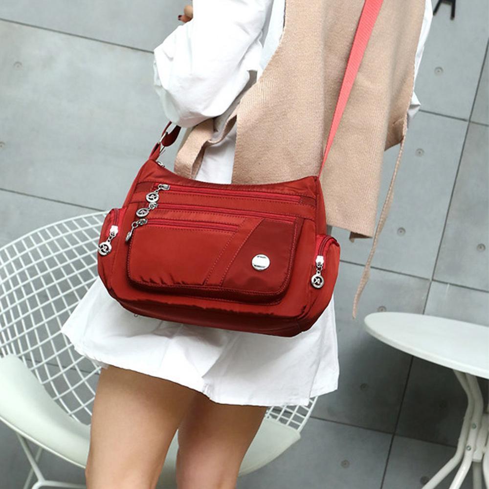 The bag is for the ladies and is made of nylon. If the ladies go to work or go on a trip, they can carry the bag. The bag is very practical and portable.