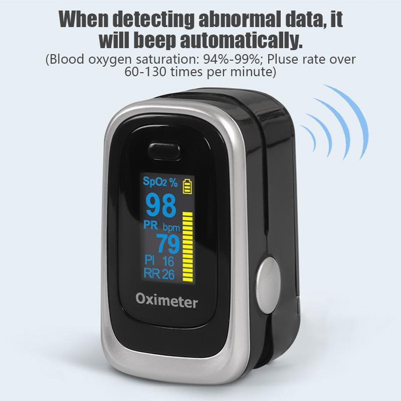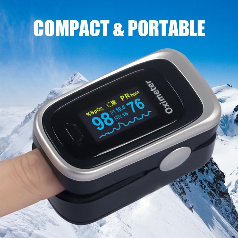 ACCURATE and RELIABLE Fingertip Pulse Oximeter can accurately determine your SpO2 (blood oxygen saturation levels) and PR (heart rate) after clinical and professional tests, rapid SpO2 readings, pulse measurements and display it conveniently on a large digital clear OLED display.