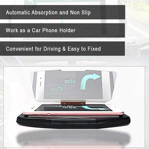 AUTOMATIC ADSORPTION & NON SLIP: The flat of HUD is made of silicon which has automatic adsorption function. Just put the phone on the flat, it can be attached solidly and never slip on the course of driving. The other round pad is also better than the double tape. It has automatic adsorption, and be placed limberly anywhere you want, instead of fixed place after attachment