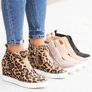 Take your look to new heights in these Trendy Sneaker Wedges! Made of faux suede material and features a closed toe, inner zippers, and approx. a 3" sneaker wedge. We are loving them paired up with frayed denim jeans and a chic blazer cardigan.