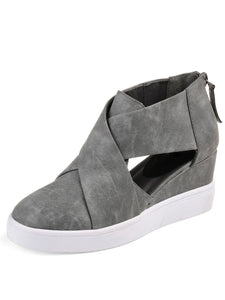 Women Spring Cut Out Ankle Boots Wedge Sneakers Plus Size Shoes